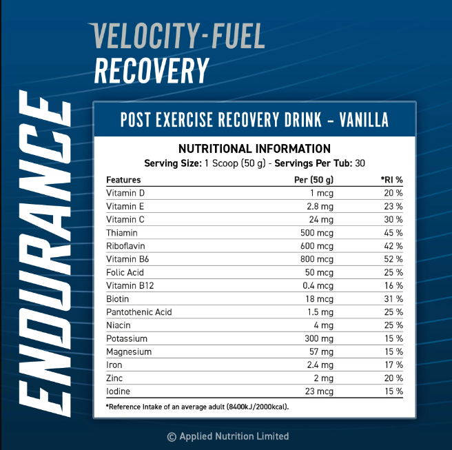 Endurance Velocity-Fuel Breathe is designed as an easily digestible and quick supply of energy, delivering 48g of fast absorbing carbohydrates and 300mg of electrolytes per serving with the addition of Applied Nutrition’s unique Breathe Easy™ formula, popular amongst users wanting to increase oxygen intake during exercise.